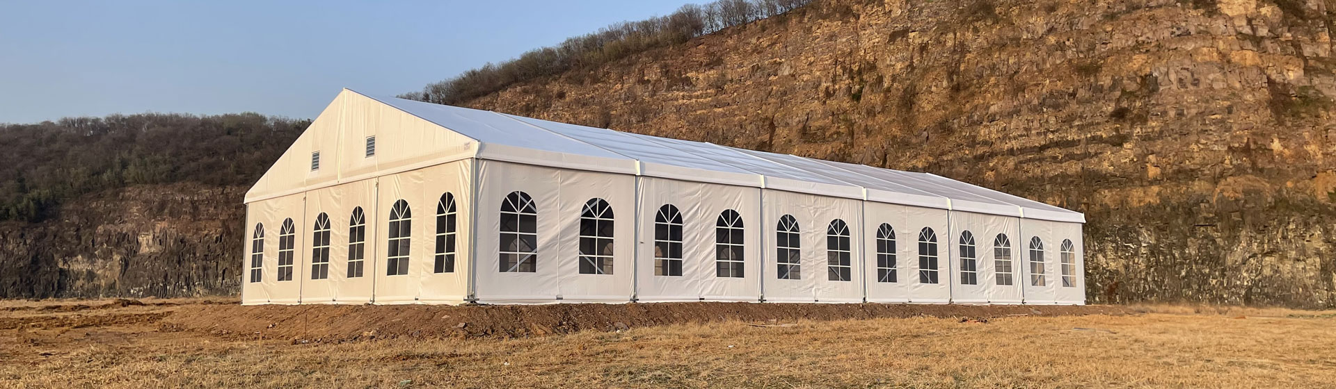 尖頂雙翼篷房搭建速度快,后期拆卸方便可移動,有防水,防紫外線的性能,可抵抗10級...